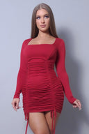 Sexy & Chic Long Sleeve Square Neck Ruching Tie Basic Dress 83% off