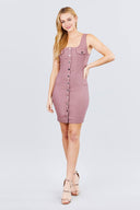 Sleeveless Deep Square Neck Button Down Detail Mini Woven Dress 83% off