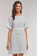 Off-white Short Sleeve Relaxed Fit Draw String Tie Waist Detail Mini Dress 85% off