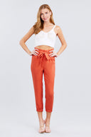 Paperbag W/bow Tie Elastic Hem Long Linen Pants 82% off Sold out