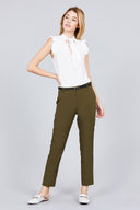 Ruffle High Waist Belt Side Pocket Front Zipper Solid Pants 82% off