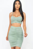 Ruched Crop Top And Skirt Sets 83% off Sold out