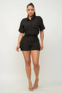 Front Button Down Side Pockets Top And Shorts Set 50% off