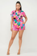Satin Dolman Print Button Down Top And Shorts Set 50% off