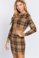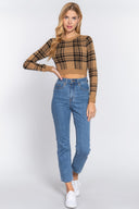Elevate your wardrobe with our Long Sleeve Check Crop Sweater, a chic and comfortable piece that effortlessly merges style and warmth. This trendy sweater features a round neck and a sophisticated tartan check pattern, making it a versatile addition to your collection.