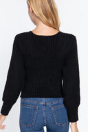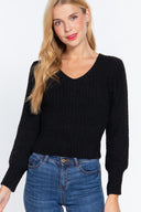 Why Choose Long Puff Sleeve V-Neck Rib Sweater?