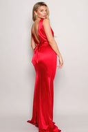 Sleeveless Deep V Low Back Bow Maxi Dress