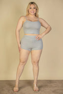 Plus Size Ribbed Cami Crop Top & Ruched Shorts Set