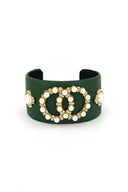 Introducing our Fashion Pearl Double Round Studded Faux Leather Cuff Bracelet, a statement piece that seamlessly blends edgy style with timeless elegance. This cuff bracelet is crafted with precision and attention to detail, featuring double rounds of pearls and studded faux leather for a unique and eye-catching design.