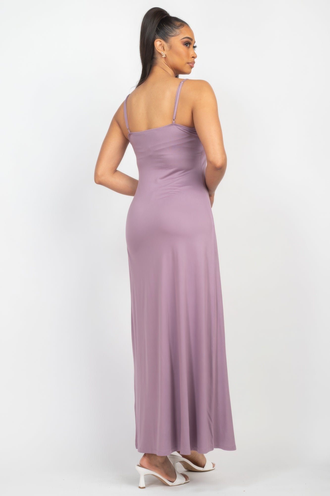 A casual top in a solid color with a scoop neckline, adjustable cami straps, and a sleeveless cut for breezy comfort. The front slit detail and button-down closure add a touch of flair, creating a full-length silhouette that's effortlessly chic.
