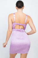 2. Neckline and Design: Features a satin fabric, square neckline, ruffled trim details, smocking design, square back cutouts, sleeveless design, and a flattering bodycon silhouette.