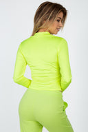 Add the "Mock Neck Zip Front Crop Top" in Neon Yellow to your cart now and embrace the perfect blend of fashion and comfort!