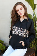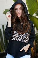 Add our Contrast Leopard Print Front Zipper Up Kangaroo Pocket Windbreaker Hoodie in Black to your cart now and embrace both style and comfort in one chic piece!