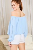 Add our Off-Shoulder Long Bubble Sleeve Solid Top in Light Blue to your cart now and experience the perfect blend of fashion and comfort!