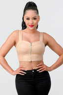 Lux Faux Leather Pu Zipup Strap Sleeveless Cropped Top