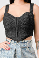 Crinkle Stretch Knit Sweetheart Hooked Bustier Cropped Top
