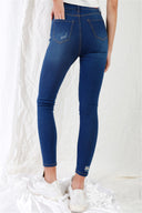 Why Choose Dark Blue High-waisted With Rips Skinny Denim Jeans?